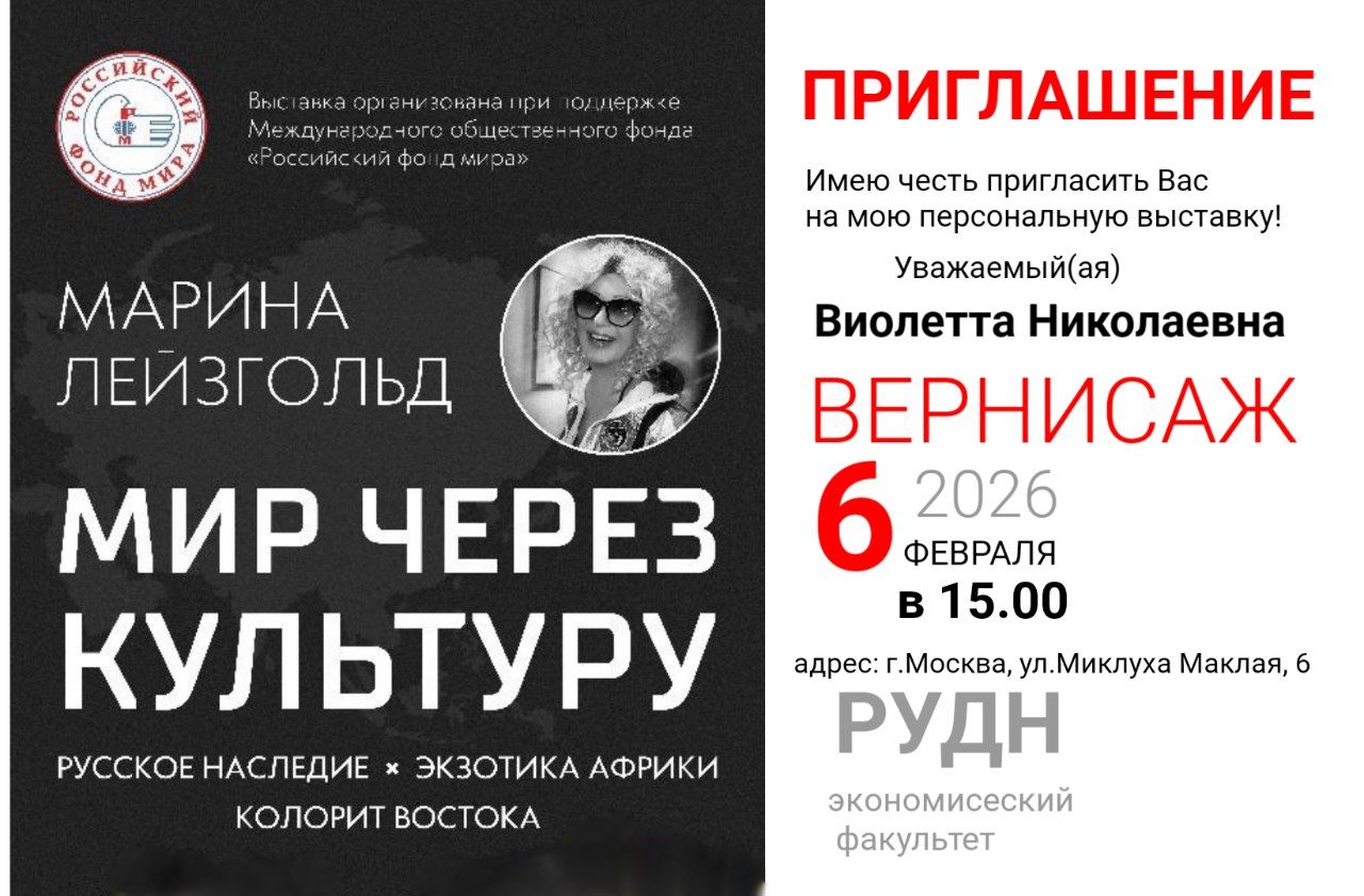 В день рождения Российского университета дружбы народов (РУДН), экономический факультет стал площадкой для объединения искусства, образования и международной дипломатии. В торжественной обстановке состоялось открытие выставки художницы Марины Лейзгольд «Мир через культуру».