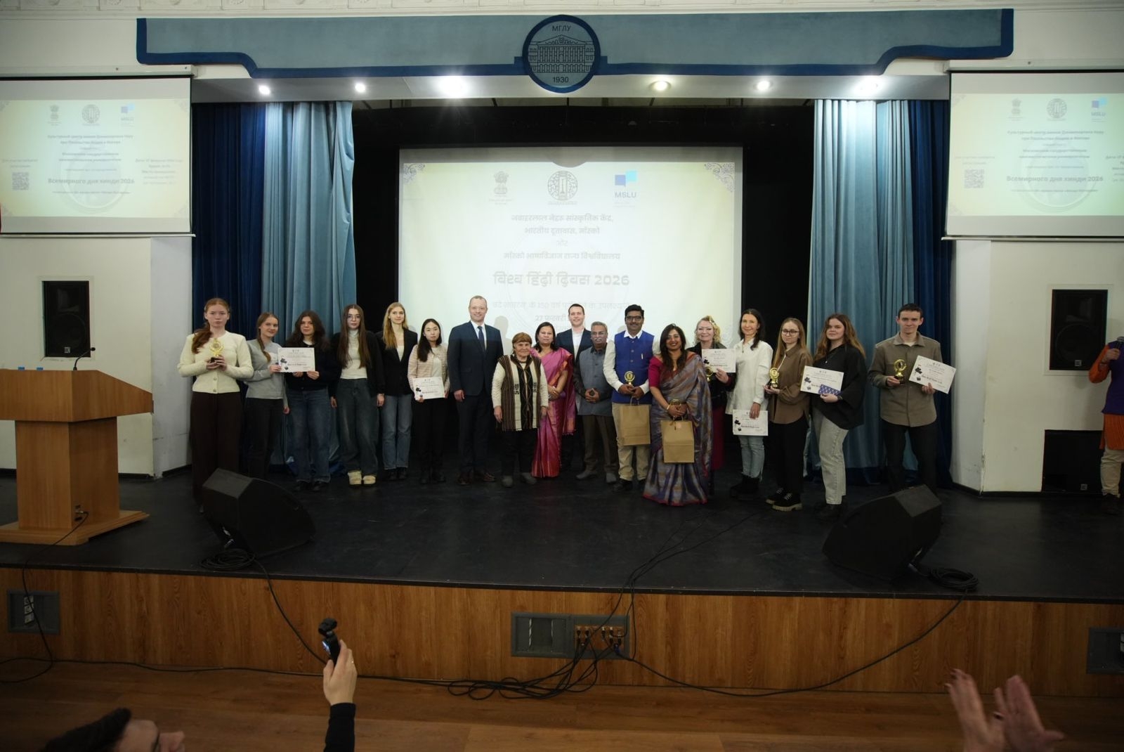 The Jawaharlal Nehru Cultural Centre, Embassy of India, Moscow, jointly with Moscow State Linguistic University, celebrated World Hindi Day at the MSLU Assembly Hall on February 27, 2026. The event was dedicated to 150 years of the iconic song “Vande Mataram”.